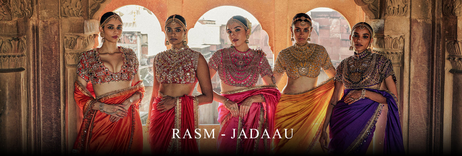 As an inherent philosophy, the house brings to life age old-crafts such as Kalamkari, Madhubani, Chikankari, and Gota-Weaving.
