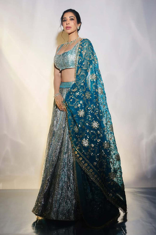 Karishma Tanna in Gaja Kavya Saree and Mirror Work blouse