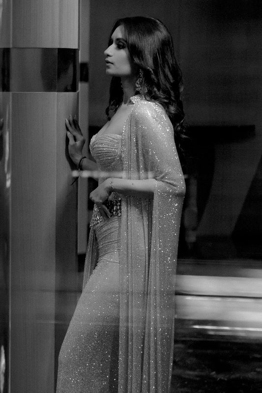 Wamiqa Gabbi in Celestial Flutter Saree Set