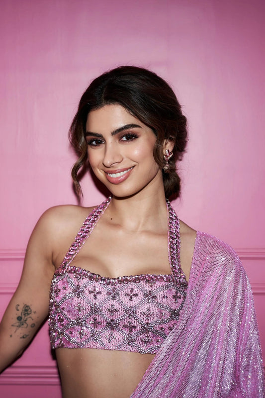 Khushi Kapoor in Pink Mystic Saree Set