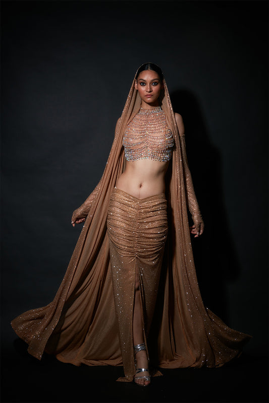 Taylor Full Sleeve Tie Up Top, Rachel High Slit Full Length Skirt
