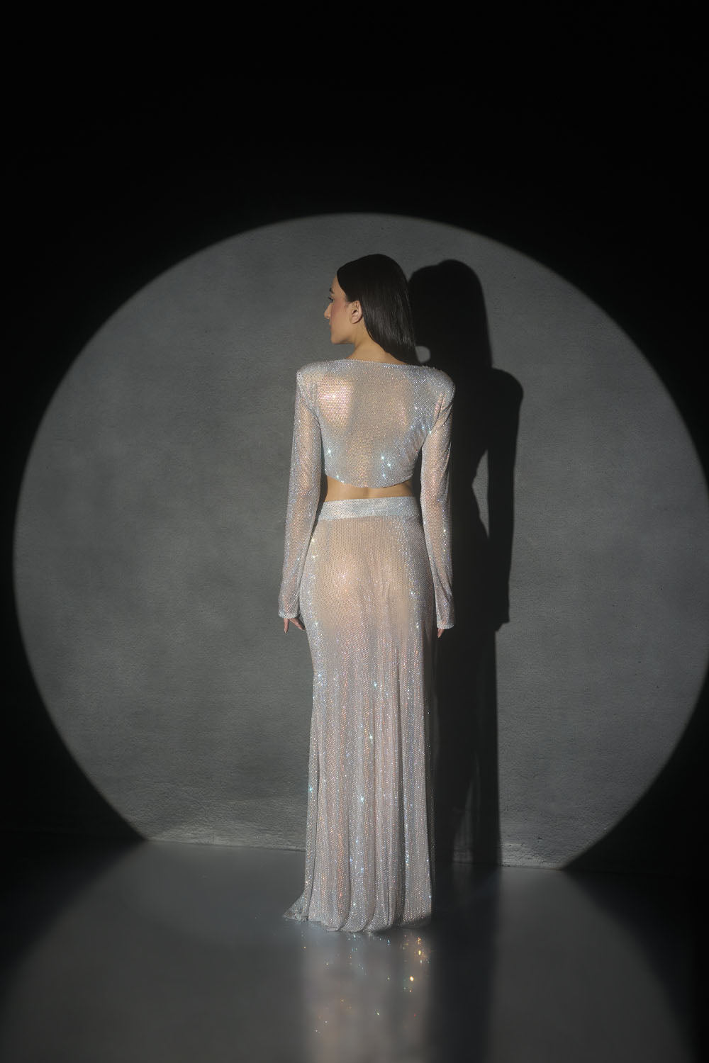 Taylor Full Sleeve Tie Up Top, Rachel High Slit Full Length Skirt