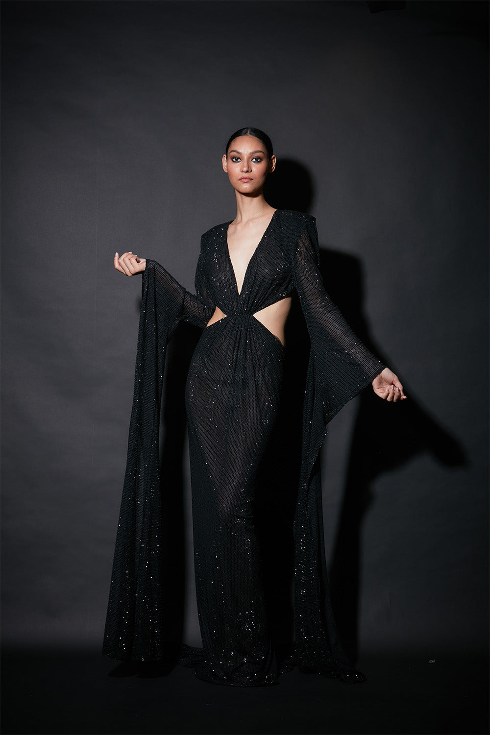 Embellished Cutout Gown in Stunning Black Color