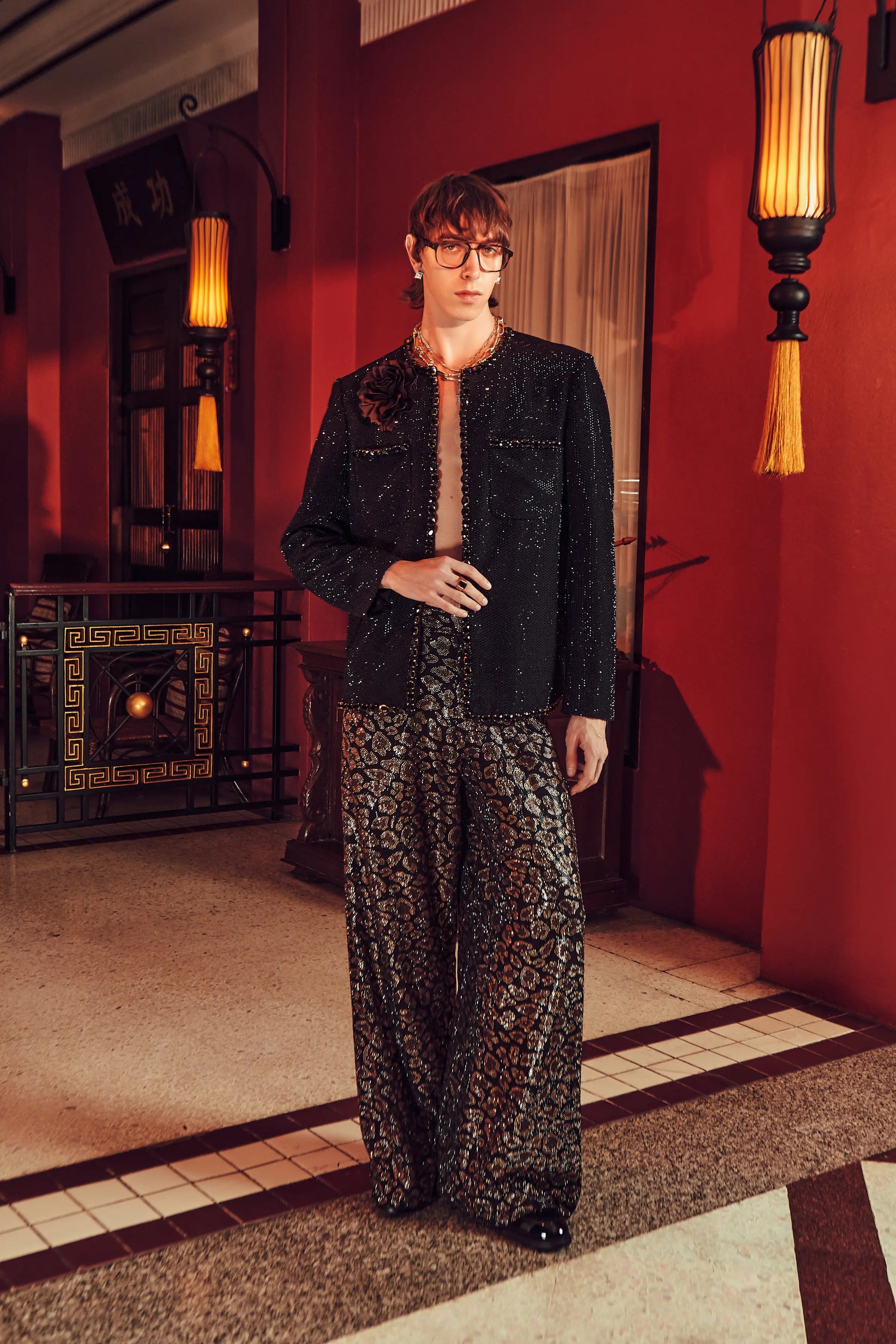 Color: BLACK JACKET, LEOPARD PRINT TROUSERS